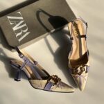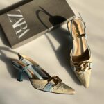 Step out in style with Zara Floral Embroidered Pumps. Featuring delicate floral embroidery and chic chain detailing, these pumps add a feminine and sophisticated touch to any outfit. Perfect for both casual and dressy occasions.