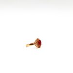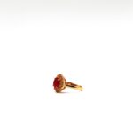 The Ruby Halo Gold Ring features a vibrant ruby surrounded by a delicate halo design, set in polished gold for a luxurious and elegant look. Perfect for gifting or special occasions.