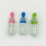 “Simplify mealtime with the Silicone Spoon Feeder, a mess-free solution designed for one-handed feeding of purées and cereals. This soft, BPA-free silicone bottle allows you to gently squeeze the perfect amount of food directly onto the attached spoon, making it ideal for travel or busy home life. The protective cap ensures hygiene while on the go, providing a comfortable and convenient transition to solid foods for your baby.