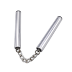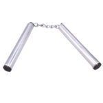 A pair of nunchaku made with stainless steel components, typically featuring metal handles and a connecting chain or cord. These are durable, heavy-duty martial arts training tools suited for experienced practitioners, demonstrations, or performance work. The stainless steel construction offers strength, weight, and longevity.