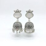 Inspired by the soft, mysterious glow of the night sky, these earrings feature smooth white stones encased in intricately etched, oxidized silver. The elegant, petal-like silhouette provides a touch of celestial charm that gracefully frames the face, while celebrating the essence of Indian artistry. They are the perfect accessory for those who appreciate a blend […]